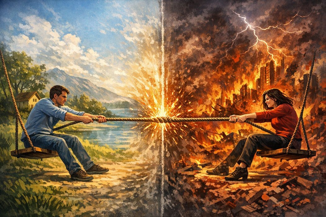 В данной статье представляется критический обзор упрощенного восприятия цикла контакта как безмятежного процесса удовлетворения потребностей. Такой взгляд разрывает связь между «нормальным» циклом и «т tragic» моделью невроза, хотя на самом деле это всего лишь две стороны одного медали с разной глубиной. Ключевым элементом, объединяющим их, является напряжение — феномен, обозначающий встречу с новизной. Процесс общения можно рассматривать как диалектическое движение, начиная с привычного целостнообразующего принципа (тезис), проходя через напряжение, возникающее от новизны (антитезис), и заканчивая трансформацией идентичности (синтез). Механизмы прерывания и адаптации становятся способами управления напряжением, что защищает личность от разрушения. Статья иллюстрируется примерами из клинической практики и предоставляет ценные рекомендации для терапевтов.