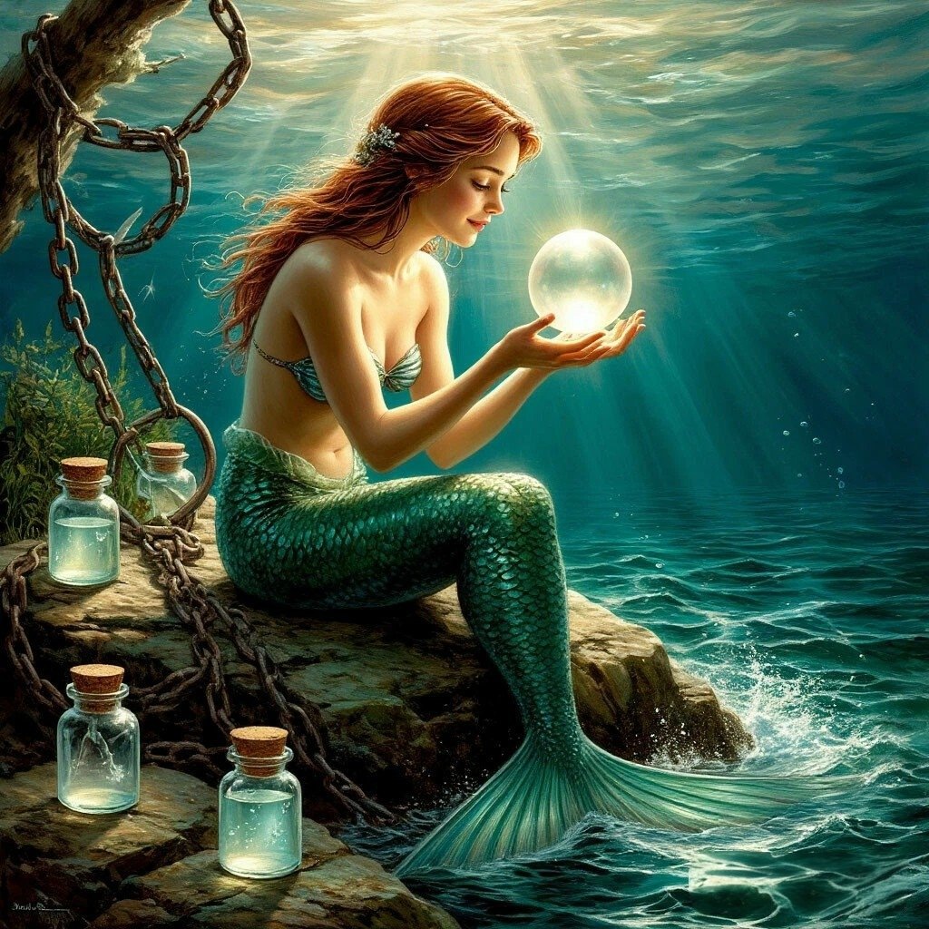 В подводном царстве, где кораллы тихо шепчутся с течением, жила Русалка. С её хвостом, сверкающим лунным светом, можно было уподобить лишь волшебным сказкам, а голос заключал в себе целую симфонию океана.