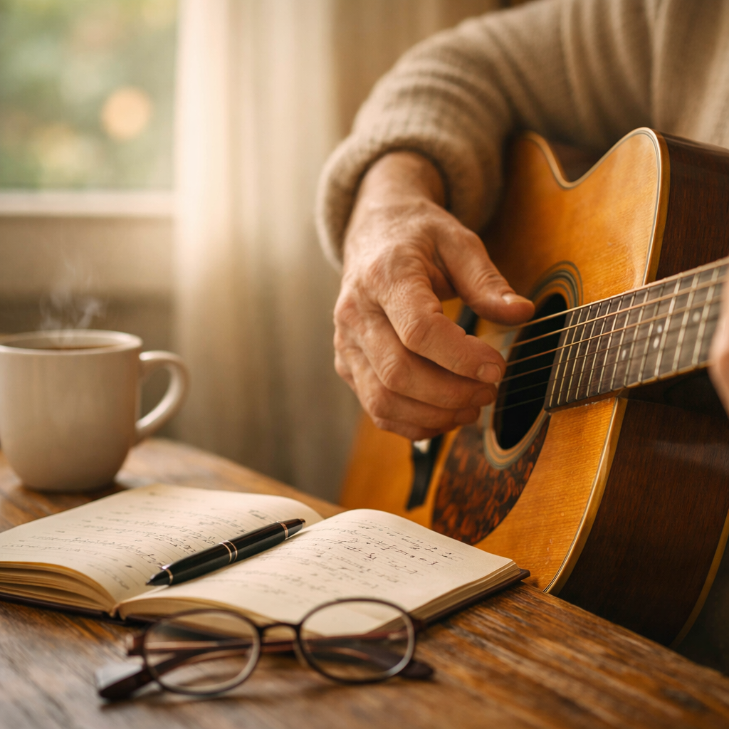 Когда взрослый человек берёт в руки гитару, это не просто обучение. Это спокойное, осмысленное проживание момента.