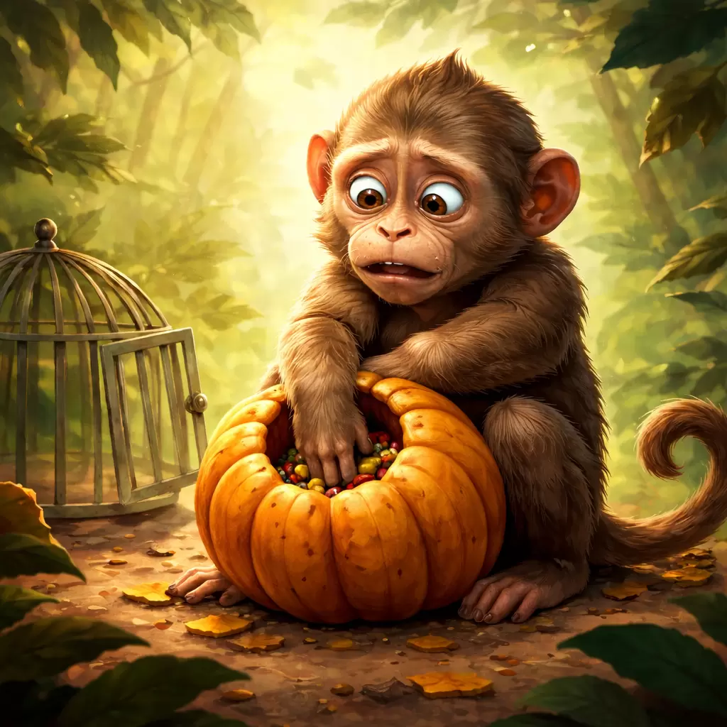 Существует любопытная притча о ловле обезьян, которая заставляет задуматься о том, как мы сами себя запираем в ловушки. Для этого метода в тыкве делают узкое отверстие и помещают внутрь сладость. Обезьяна, пытаясь достать лакомство, засовывает руку, сжимает уголок жадности в кулаке и оказывается в ловушке. Вытащить её не получается, хотя достаточно просто разжать ладонь. Но именуемая «свободой» обезьяна предпочитает оставаться в плену своих представлений о счастье.