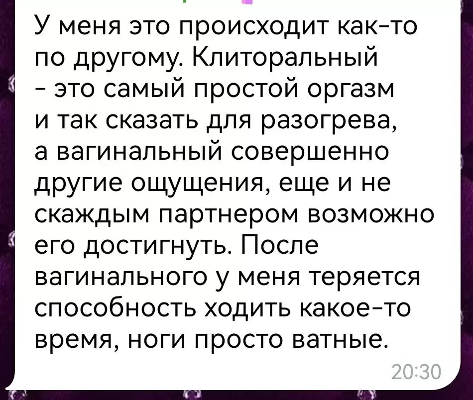 Важно понимать, что один и тот же тип оргазма может ощущаться по-разному, и это абсолютно естественно. Каждый опыт зависит от множества факторов — от состояния тела и ума до настроя и эмоциональной вовлечённости. Главное — разрешить себе испытывать разнообразные ощущения и не машинально следовать определённым ожиданиям.
