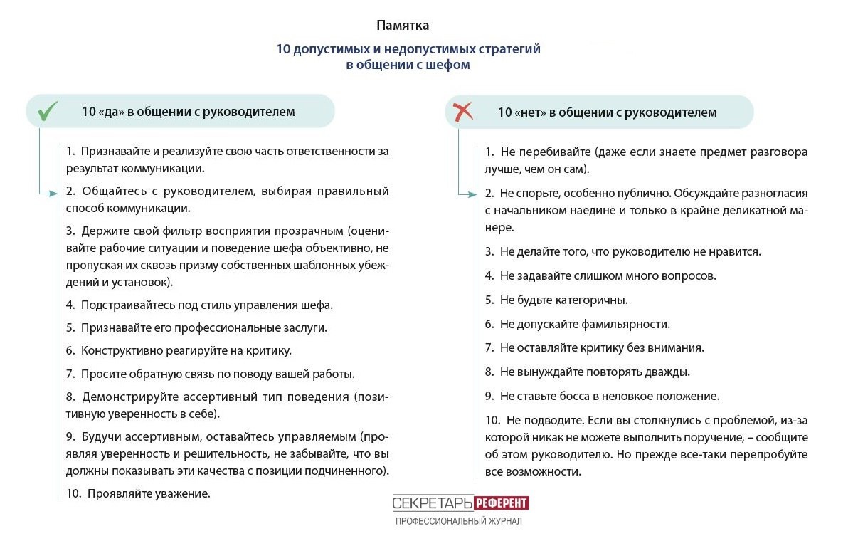 Знание этих стратегий поможет работникам строить здоровые и продуктивные отношения с руководством, избегая потенциальных подводных камней в общении.