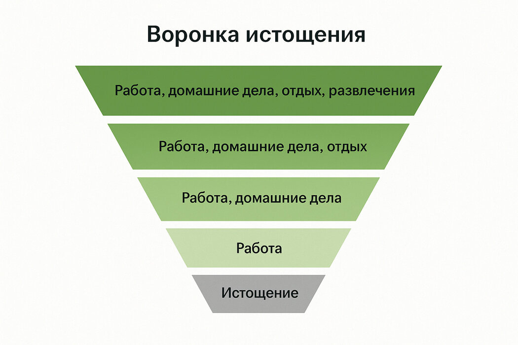 Важно осознавать: психологическая устойчивость формируется не только благодаря умению справляться с трудностями, но также через способностъ восстанавливать силы. Внимательно слушая сигналы своего организма и вовремя реагируя на них, можно снизить вероятность оказаться на дне воронки.