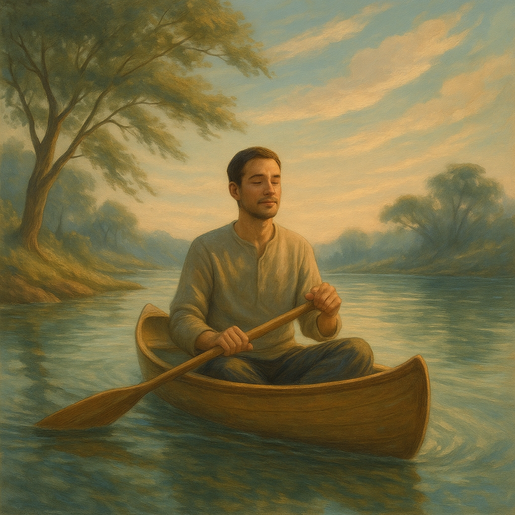 Жизнь, как река. Её течение не остановить, но можно научиться плыть в нём. Отказавшись от борьбы, человек находит лёгкость и осознаёт, что не нужно всё контролировать. Внутри появляется доверие: всё идёт, как нужно.