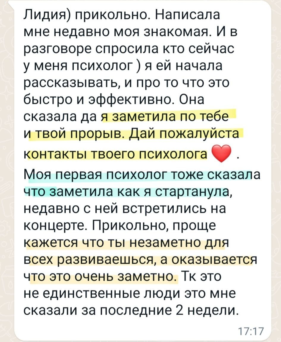 Завершение сессии не просто приводит к новому пониманию, но и к изменению внутреннего восприятия. Клиенты уходят не только с осознанием, но и с заметным облегчением и новыми реакциями на привычные ситуации.