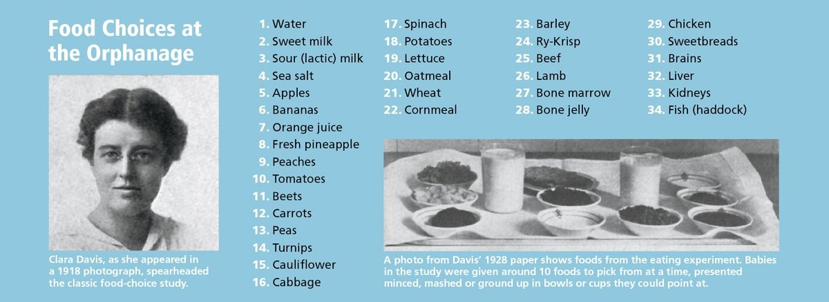 В начале XX века Клара Девис проводила уникальный эксперимент, который оставил заметный след в области детского питания и естественного выбора еды у младенцев. Исследование растянулось на 3-4 года и до сих пор не имело аналогов, пишет Сайт психологов b17.ru.