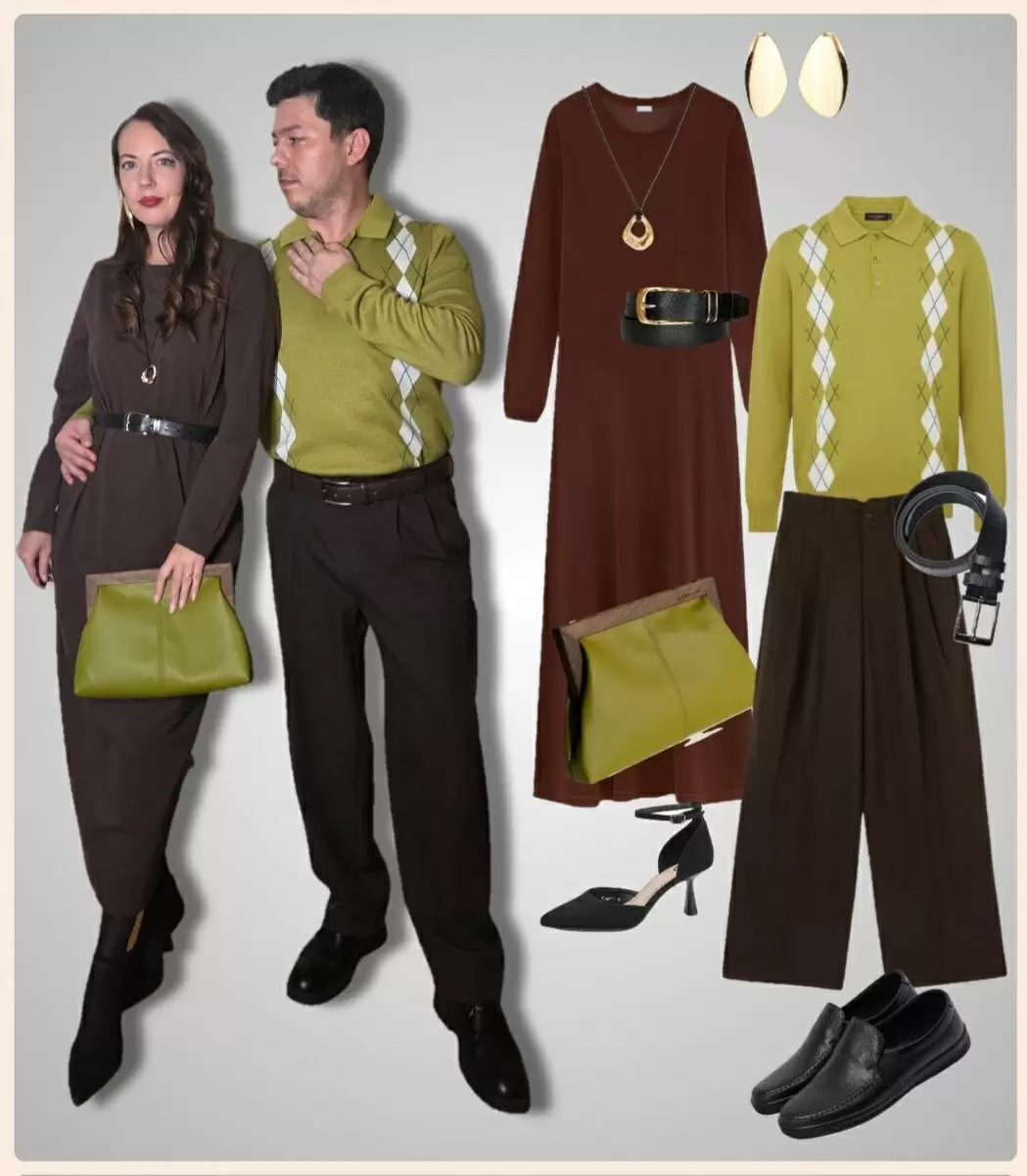 - Выбираем один стиль. Стилистическое единство является ключевым. Если мужчина выбрал уютный свитер, то и девушка может остановиться на чем-то трикотажном и расслабленном. К примеру, если она выбирает туфли на каблуке, лучше и парню подыскать что-то более элегантное — не в кроссовках же ему на праздник.